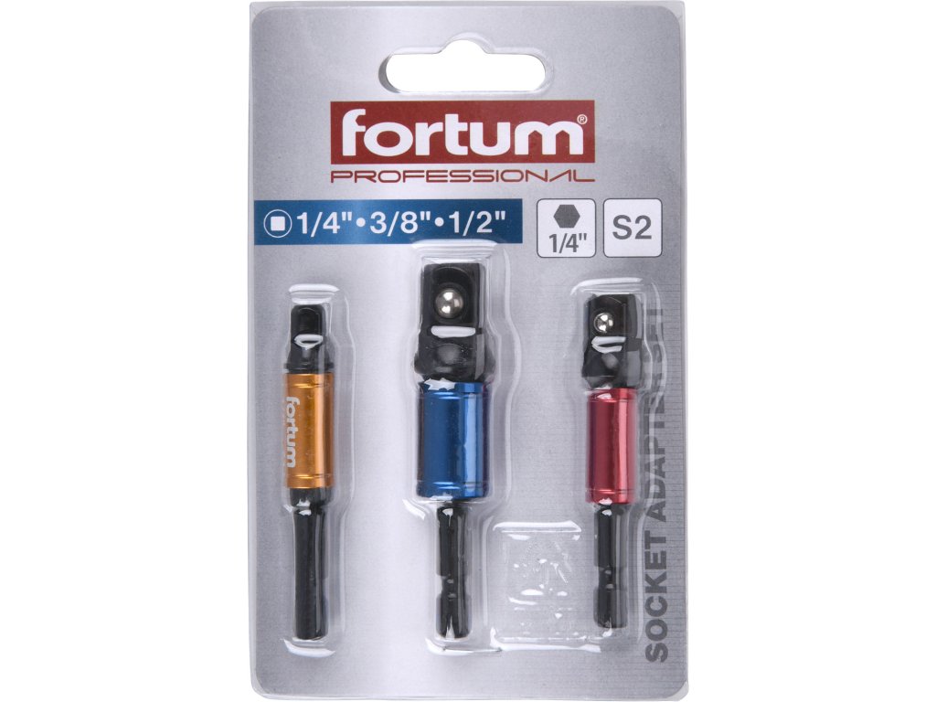 adaptéry do vrtačky s otoč.úchytem 3ks, 1/4"-3/8"-1/2", S2