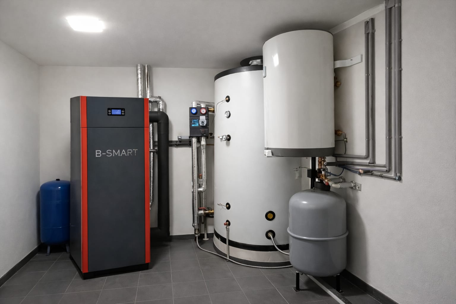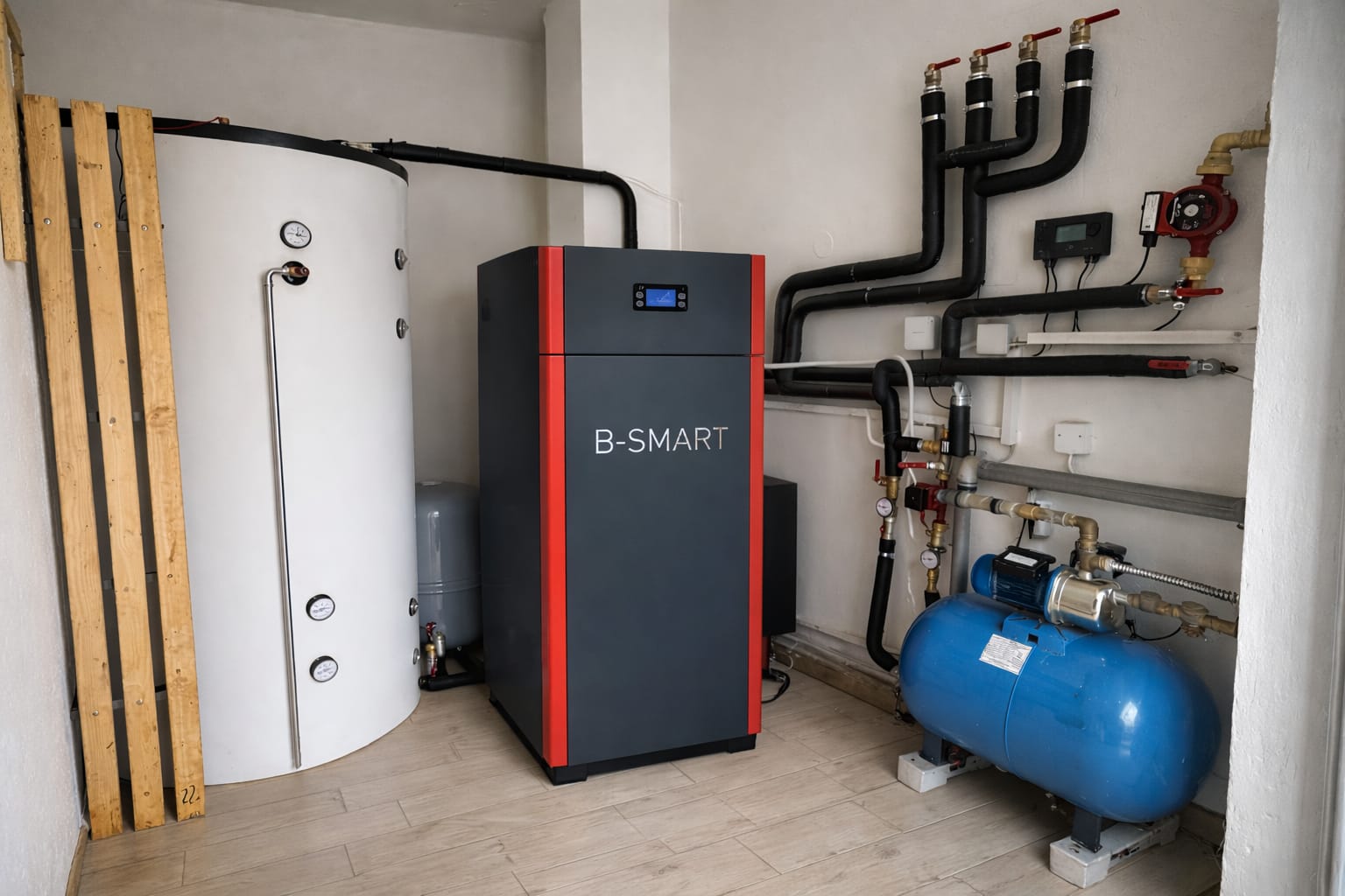 B-Smart 30 kW je určený do kotelny (nikoli do obytných prostor). V provozu pracuje podavač, ventilátor a řídicí systém, což může být v tichém interiéru slyšitelné. Kotelna je navíc správné místo kvůli větrání, bezpečnosti a servisnímu přístupu.