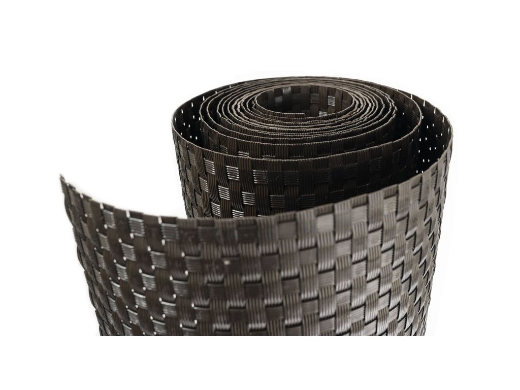 Zástěna je vyrobena z barevně stálého a tvarově stabilního umělého ratanu. Tento 100% recyklovatelný polyethylen je odolný vůči UV záření, dešti, mrazu i plísní. Konstrukce z horizontálních a vertikálních pásků (19 mm) zaručuje, že se materiál netřepí ani po střihu a zástěna si dlouhodobě uchová svůj vzhled.