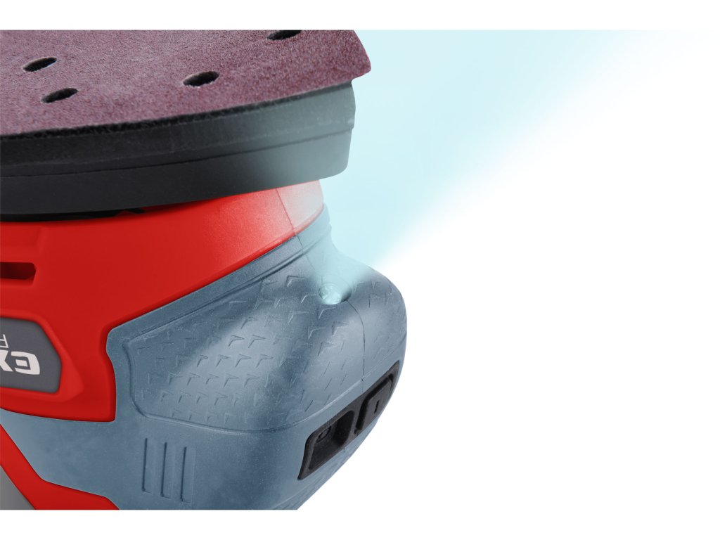 - Možnost připojení průmyslového vysavače: Po odejmutí sběrného boxu na prach lze na koncovku brusky připojit průmyslový vysavač pro odsávání prachu.