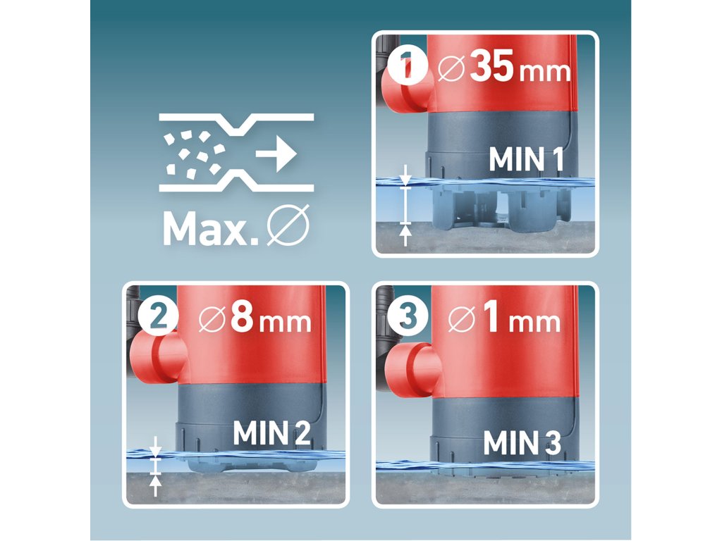 - Průchod Pevné Částice: 1, 8 nebo 35 mm (dle nastavení čerpadla)