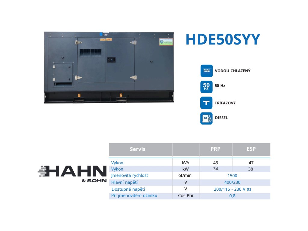 Hahn & Sohn HDE50SYY – průmyslová dieselová elektrocentrála 50 Hz (PRP 43 kVA / ESP 47 kVA)