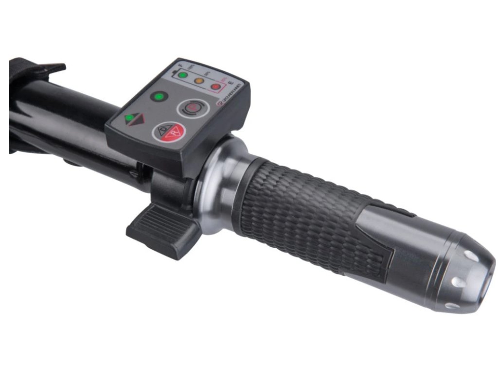 Ovládací panel na pravé rukojeti umožňuje snadné nastavení rychlosti pomocí palce. K dispozici je také elektrická brzda pro zamezení pohybu kolečka na místě a indikátor stavu baterie, který vás vždy informuje o zbývající energii. -
