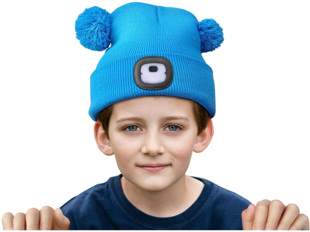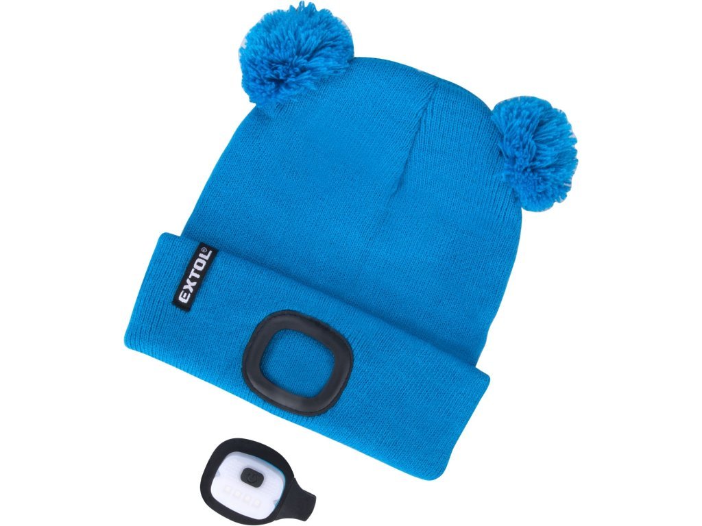 EXTOL LIGHT čepice s čelovkou 4x25lm, USB nabíjení, modrá s bambulemi, dětská 43459