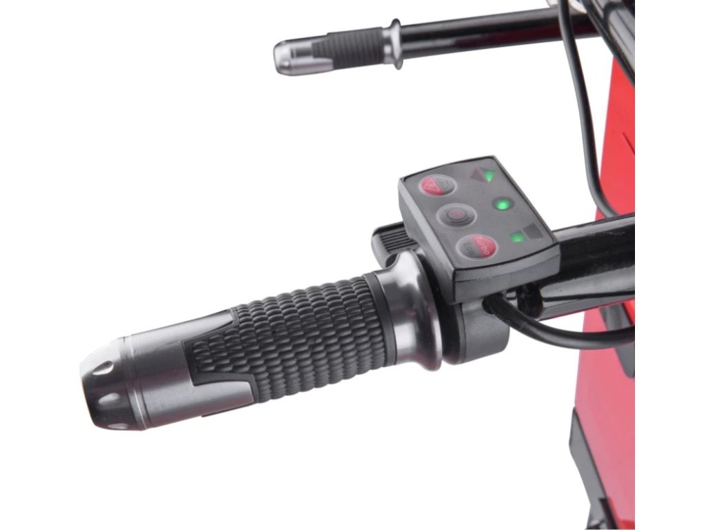 Ovladač na pravé rukojeti umožňuje snadné nastavení rychlosti pomocí palce. Přepínání mezi jízdou vpřed, zpět, aktivací brzdy a výběrem rychlostních režimů je rychlé a jednoduché. -