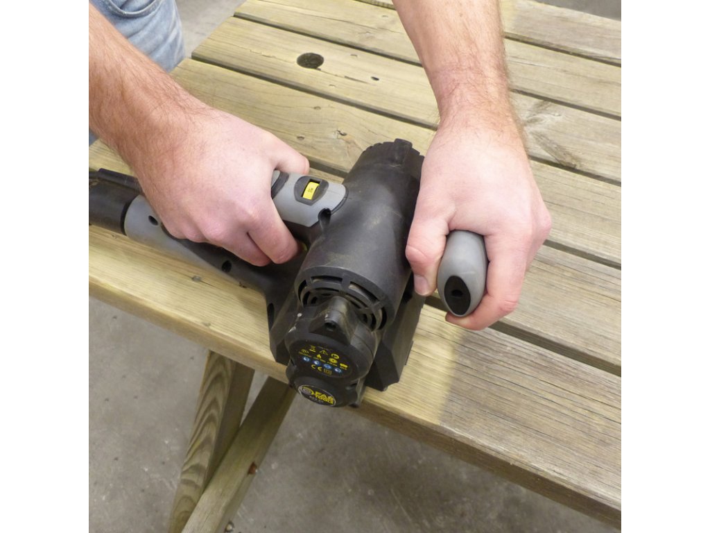 Renovátor je vhodný pro renovaci všech druhů materiálů, jako je dřevo, kov, plast a beton. - Můžu renovátor používat jednou nebo oběma rukama?