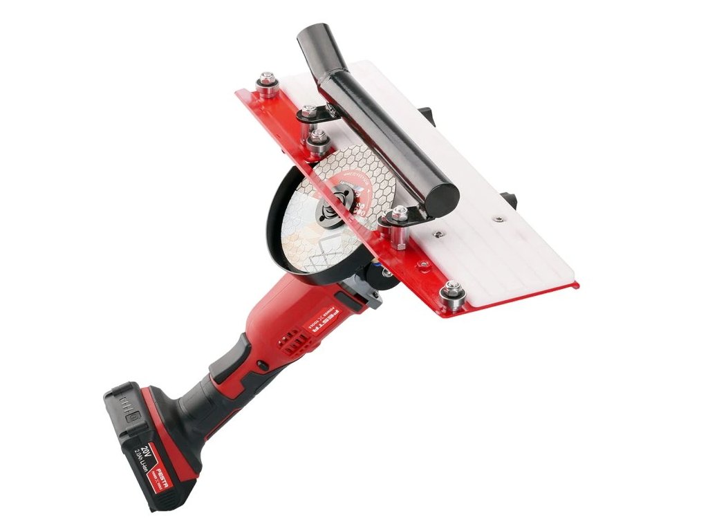 Univerzální uchycení: pro většinu úhlových brusek 115/125 mm – stačí sejmout ochranný kryt a pevně brusku upnout do těla nástavce.