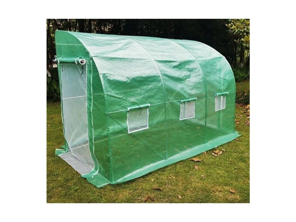 Čtyři větrací okna se suchým zipem otevřete i jednou rukou. Moskytiéra zabraňuje vstupu hmyzu a zároveň propustí vzduch. Přehřátí fóliovníku v létě je tak výrazně nižší. Viz příslušenství ke skleníkům.