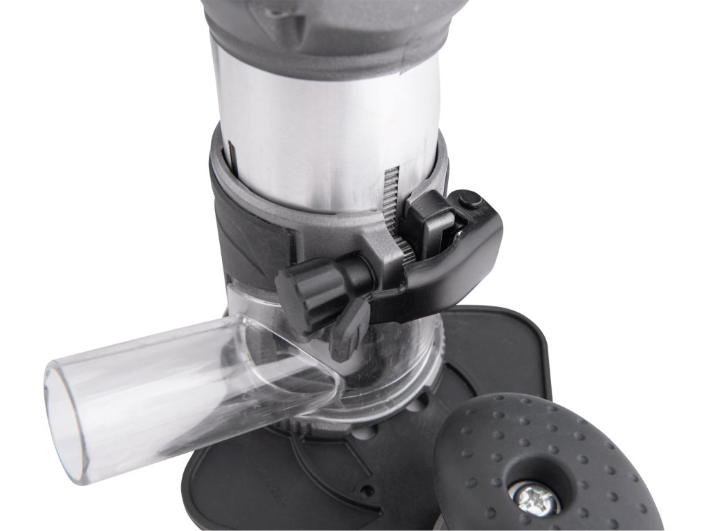 Základna s Hloubkovou Zarážkou: Základna je vybavena hloubkovou zarážkou s možností přesného posunu v řádu desetin milimetru, což umožňuje přesné nastavení hloubky frézování.