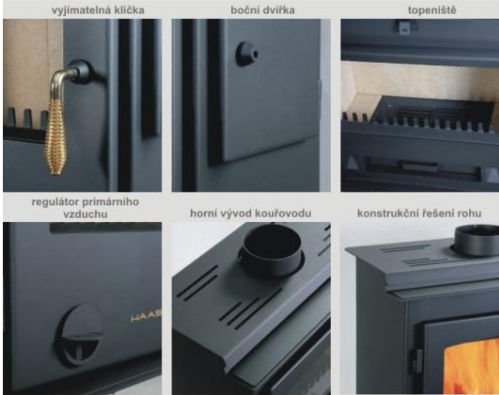 | Materiál | ocelové tělo, litinový rošt, šamotová vyzdívka |