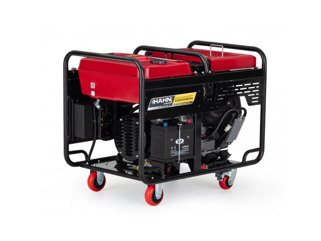 Hahn & Sohn HGG22000E3A je výkonná třífázová benzínová elektrocentrála s AVR a ATS výstupem, určená pro náročné aplikace. Nabízí 15 kW / 400 V, kvalitní dvouválcový motor 999 cm³, velkou 40l nádrž a promyšlenou zásuvkovou výbavu 230/400 V – osvědčené řešení pro provozy, stavby i záložní napájení objektů.