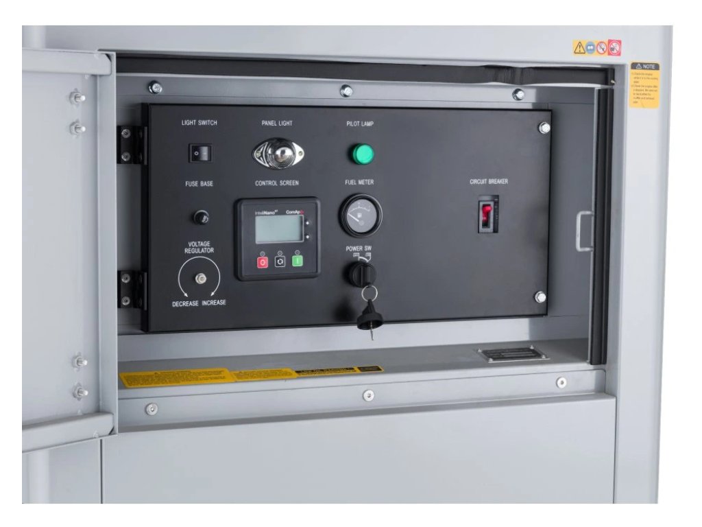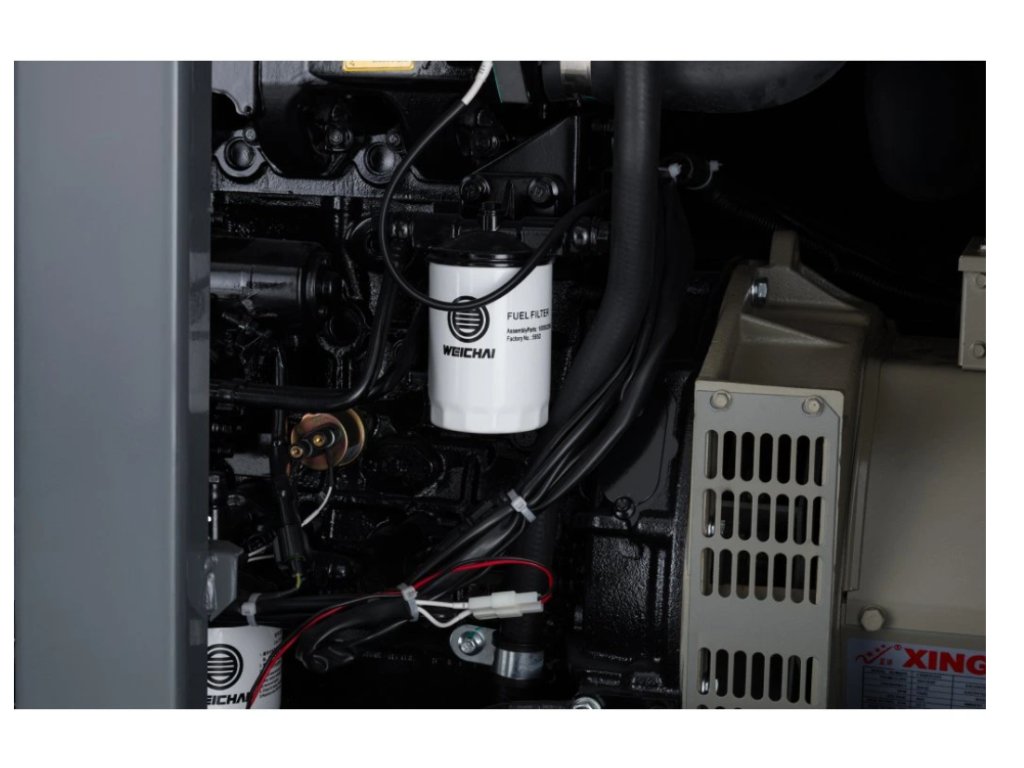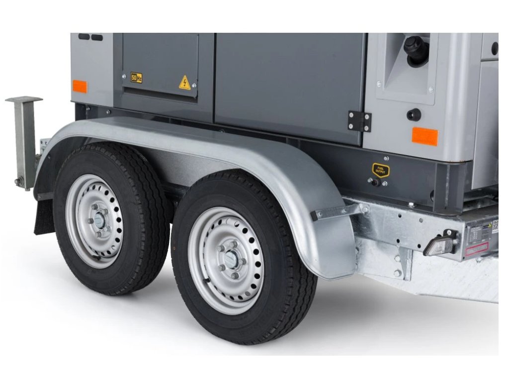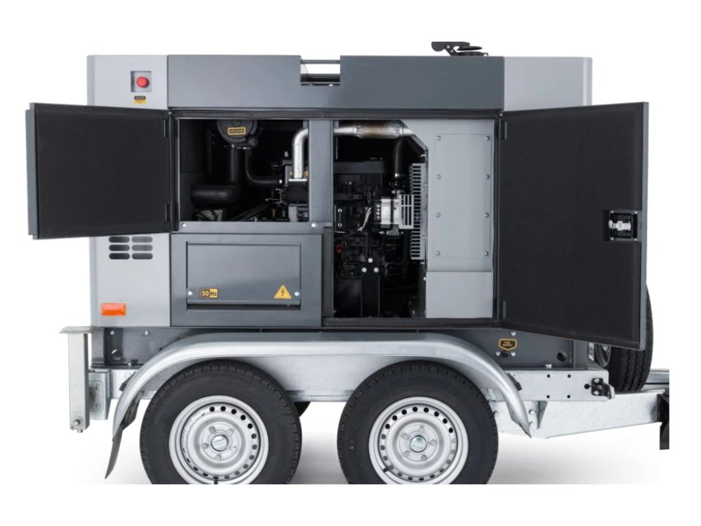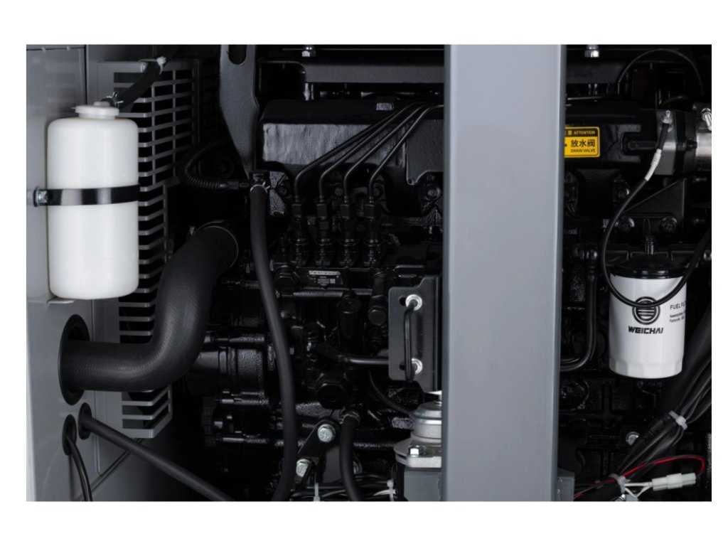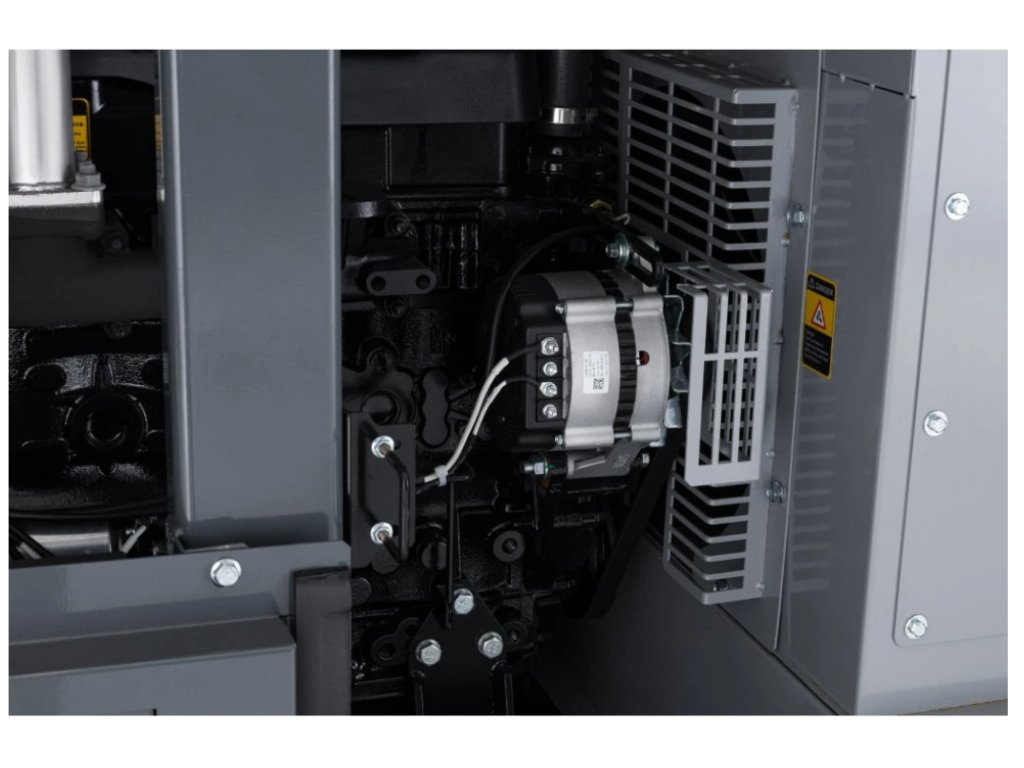 Motor a akustika: vodou chlazený 4-válcový diesel s přímým vstřikem, 1500 ot/min; super-silent kryt minimalizuje hlučnost i vibrace a chrání technologii před povětrností.