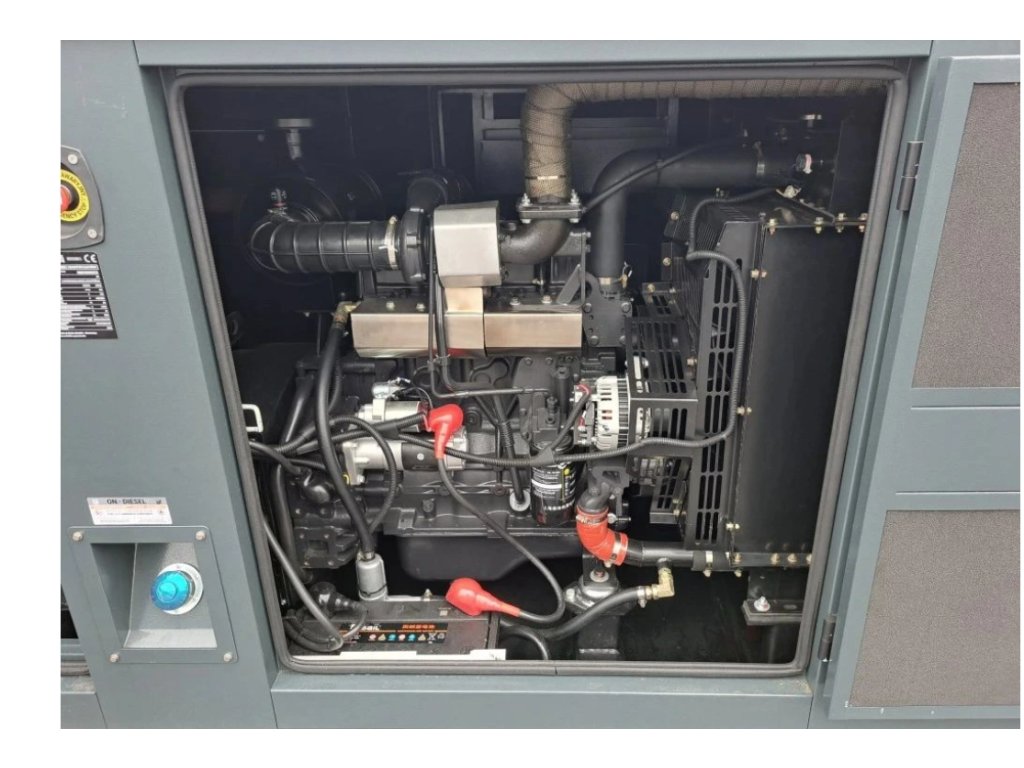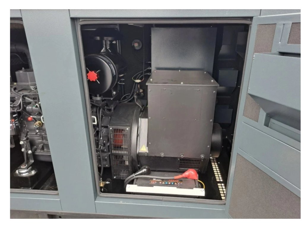 Alternátor (obvyklá průmyslová specifikace): bezkartáčové buzení, izolační třída H, krytí IP23, nízké THD (obvykle < 5 % při lineárním zatížení).