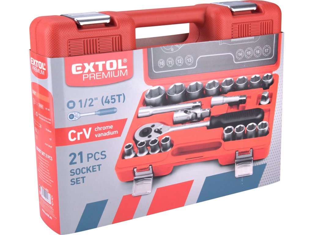 Sada nástrčných hlavic 1/2" 21ks Extol Premium 6523: Kompletní sada pro různé účely
