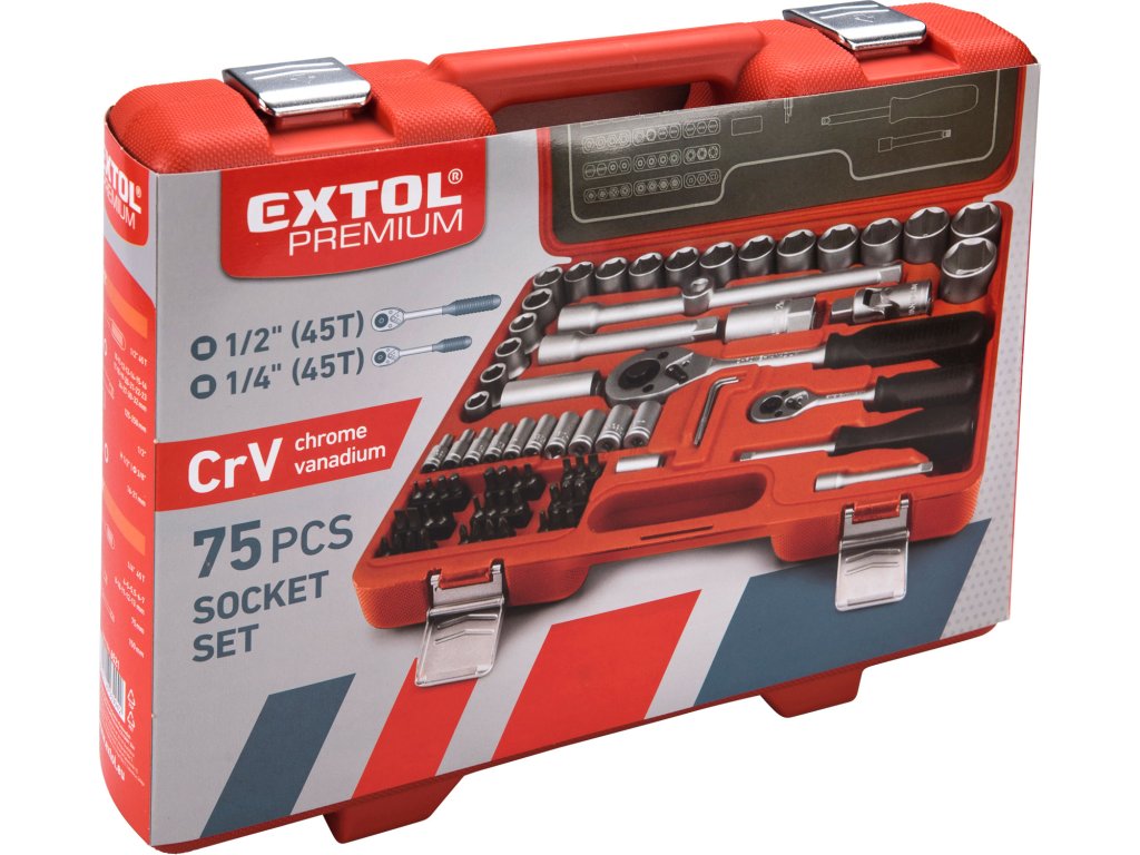 Sada nástrčných hlavic 1/4"+1/2" 75ks Extol Premium 6521