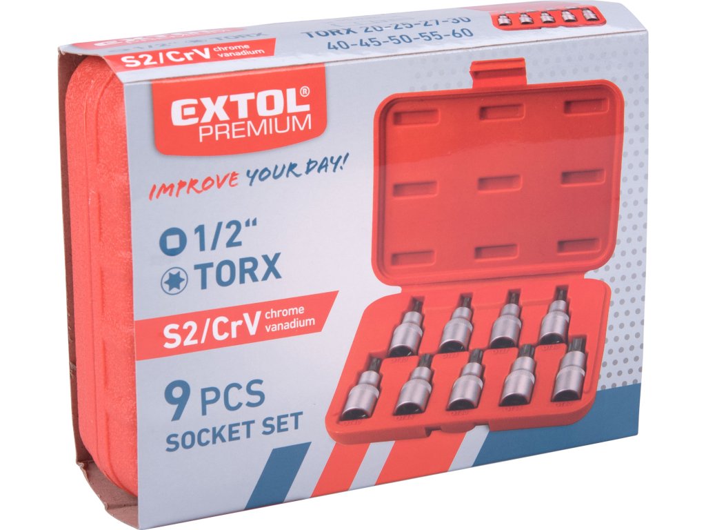 hlavice zástrčné TORX, sada 9ks, 1/2", CrV/S2