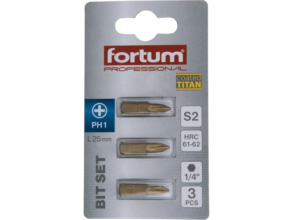 hrot křížový phillips, sada 3ks, PH 1x25mm,titan. úprava, S2
