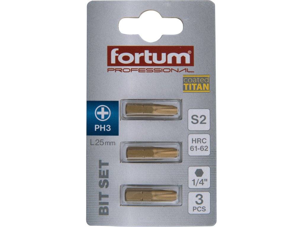 hrot křížový phillips, sada 3ks, PH 3x25mm,titan. úprava, S2