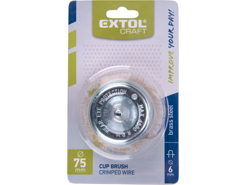 Řada technických kartáčů Extol nabízí široký výběr kartáčů pro všestranné nasazení, např. čištění povrchů materiálů, k odstraňování barev, nečistot, rzi, houževnatých nánosů, ke zdrsňování, odjehlování, odokujování apod. Upínání na úhlové brusky pomocí matice M14 a na vrtačky pomocí stopky o průměru 6mm.Doplňkové parametry