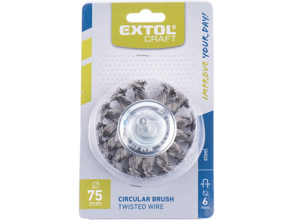 Řada technických kartáčů Extol nabízí široký výběr kartáčů pro všestranné nasazení, např. čištění povrchů materiálů, k odstraňování barev, nečistot, rzi, houževnatých nánosů, ke zdrsňování, odjehlování, odokujování apod. Upínání na úhlové brusky pomocí matice M14 a na vrtačky pomocí stopky o průměru 6mm.Doplňkové parametry