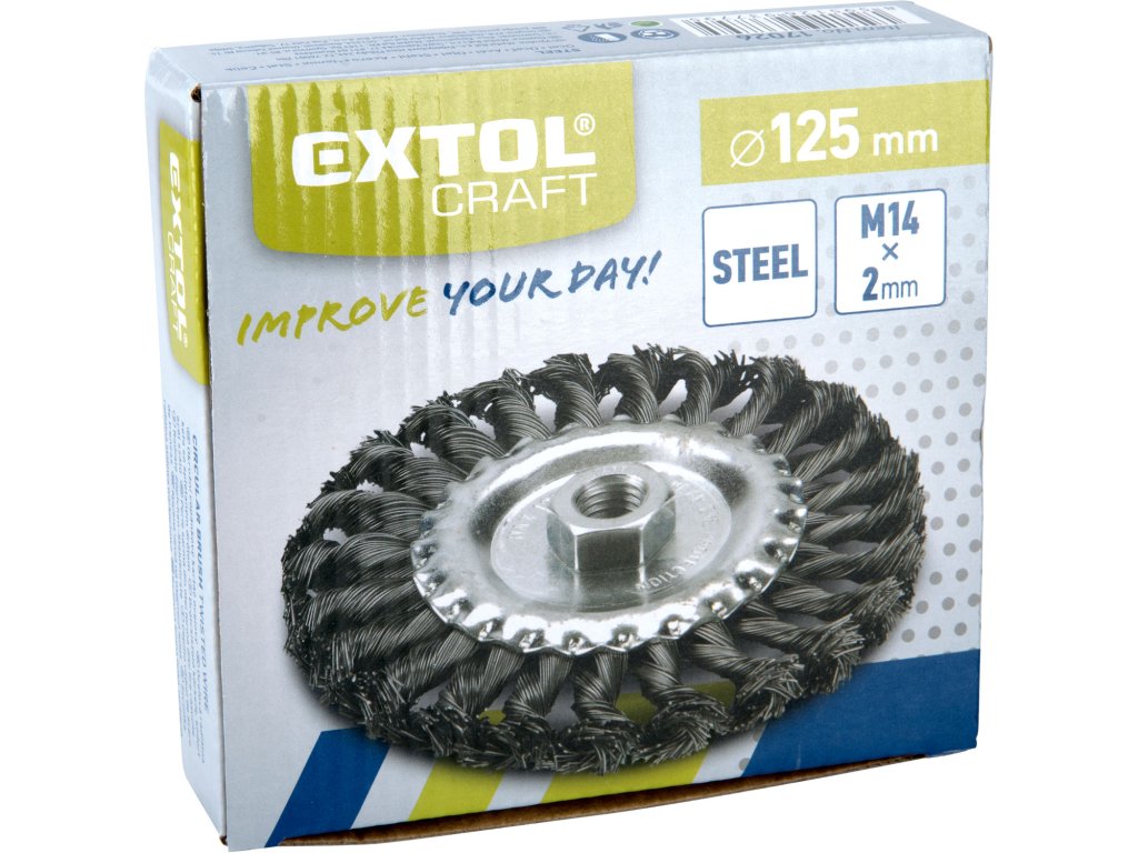 Řada technických kartáčů Extol nabízí široký výběr kartáčů pro všestranné nasazení, např. čištění povrchů materiálů, k odstraňování barev, nečistot, rzi, houževnatých nánosů, ke zdrsňování, odjehlování, odokujování apod. Upínání na úhlové brusky pomocí matice M14 a na vrtačky pomocí stopky o průměru 6mm.Doplňkové parametry