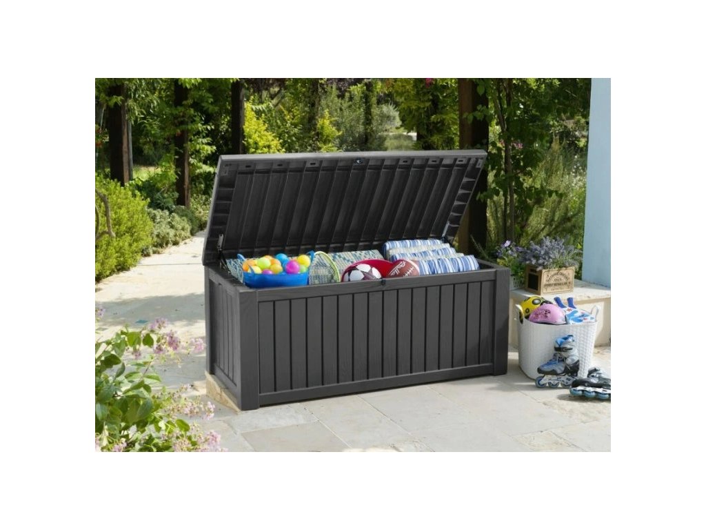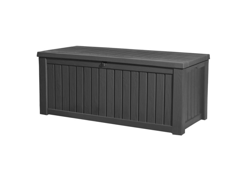 Keter Rockwood 570 l je velkoobjemový, mimořádně odolný a elegantní úložný box, který nabízí praktický prostor pro uložení podušek, dek, hraček, nářadí nebo sportovního vybavení. Jeho pevná konstrukce zároveň umožňuje využití jako lavičku – unese až dvě dospělé osoby díky maximálnímu zatížení víka 350 kg.