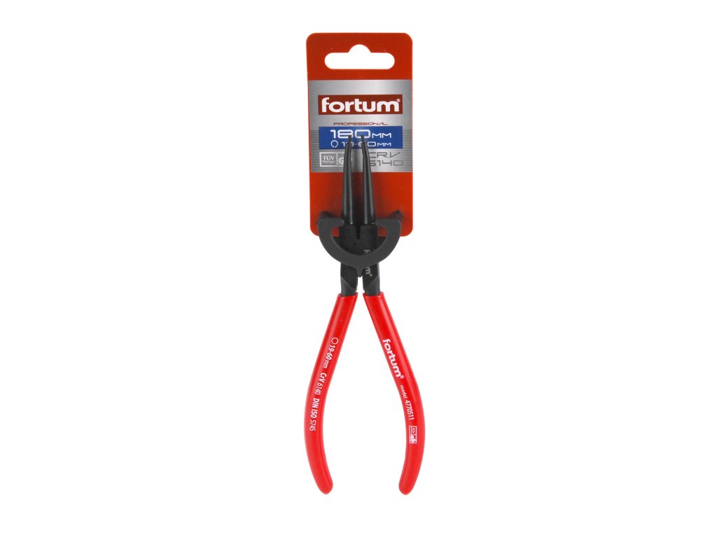 Fortum kleště na Seegerovy pojistky jsou vyrobené ze špičkové chrom-vanadové oceli třídy 61CrV4. Mají pevné válcově soustružené hroty bránící vyklouznutí, štíhlý tvar a protiskluzové PVC rukojeti. 61CrV5 a 61CrV4 (označovaná tako 6150 a 6140) je nejvyšší třída chrom-vanadové oceli. Kalená a povrchově upravená matným tvrdochromem pro dosažení optimální povrchové tvrdosti a odolnosti vůči korozivním vlivům je tato ocel použita pro všechny díly s výjimkou těch nejexponovanějších.Doplňkové parametry