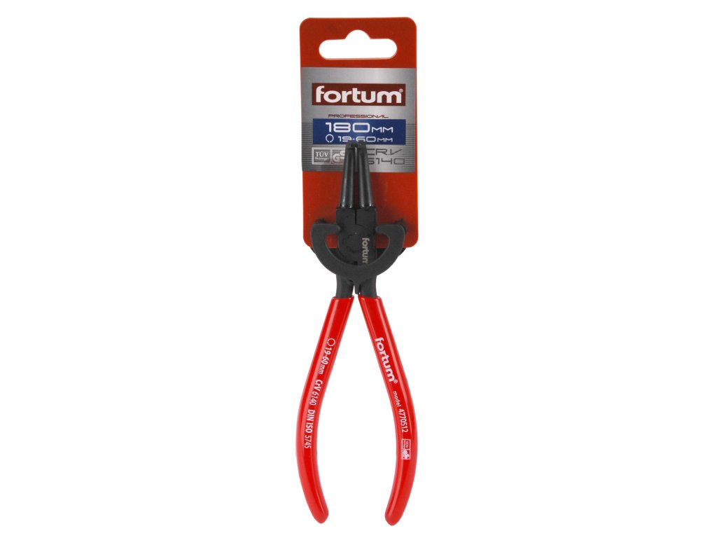 Fortum kleště na Seegerovy pojistky jsou vyrobené ze špičkové chrom-vanadové oceli třídy 61CrV4. Mají pevné válcově soustružené hroty bránící vyklouznutí, štíhlý tvar a protiskluzové PVC rukojeti. 61CrV5 a 61CrV4 (označovaná tako 6150 a 6140) je nejvyšší třída chrom-vanadové oceli. Kalená a povrchově upravená matným tvrdochromem pro dosažení optimální povrchové tvrdosti a odolnosti vůči korozivním vlivům je tato ocel použita pro všechny díly s výjimkou těch nejexponovanějších.Doplňkové parametry