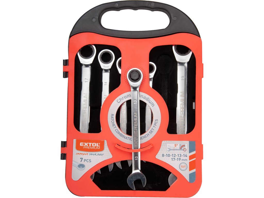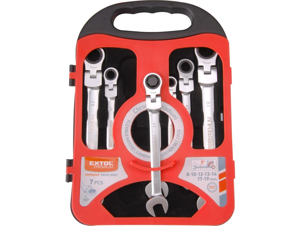 klíče ráčnové očkoploché s kloubem, sada 7ks, 8-19mm