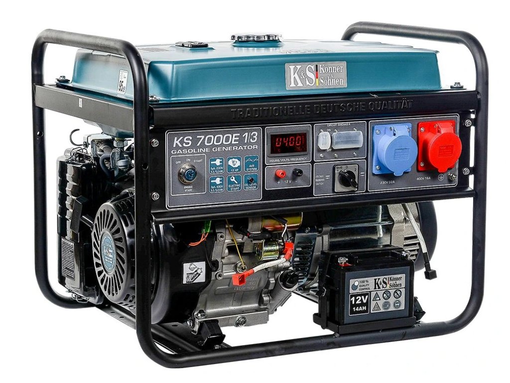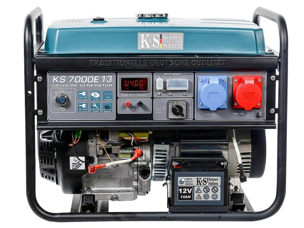 Univerzální jednofázový i třífázový zdroj energie v jednom stroji. KS 7000E 1/3 využívá VTS – Voltage Transfer Switch (přepínač napětí), díky kterému můžete pracovat v režimu 230 V (1F) nebo 400 V (3F) bez ztráty výkonu. Doplněná o AVR stabilizaci, 100% měděné vinutí alternátoru, LED displej a velkou 25l nádrž je skvělou volbou pro stavby, dílny i zálohování objektů.