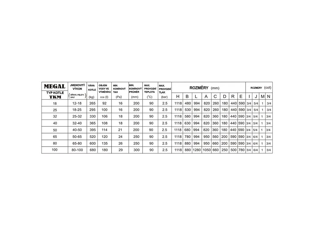 Technické parametry kotle TKM 32 kW