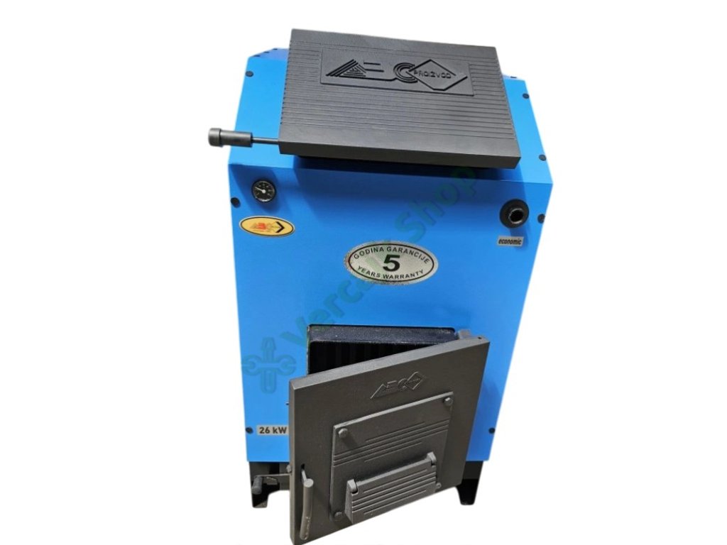 Economic S 55 kW je poctivý ocelový teplovodní kotel určený pro spalování suchého dřeva (polena cca 40 cm). Nabízí jmenovitý výkon 55 kW, vysokou účinnost a jednoduchou obsluhu i údržbu. Těleso kotle je vyrobeno z certifikované oceli s přesností laserového řezání a robotického svařování. Spalovací komora z plechu min. 4,5 mm (v exponovaných místech více) a mohutná litinová dvířka zaručují dlouhou životnost a stabilní provoz. Výrobcem je ABC PROIZVOD d.o.o.