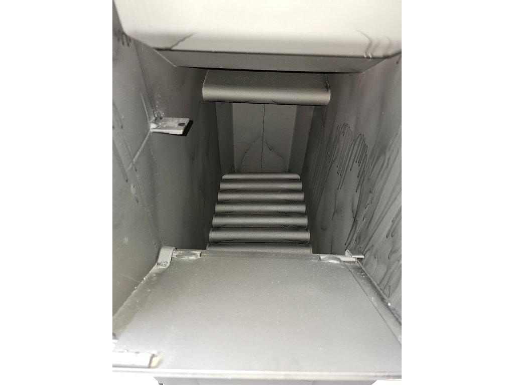 Konstrukce výměníku z kvalitní oceli zajišťuje dlouhou životnost a odolnost vůči tepelnému i mechanickému namáhání.