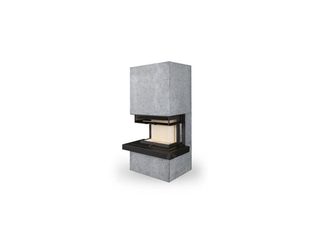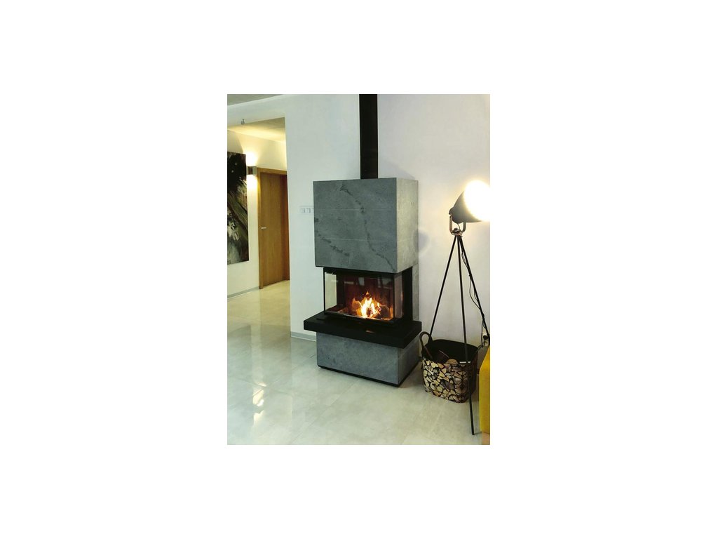 Romotop CARA C 02 – designový krb s třístranným prosklením a kamenným obkladem