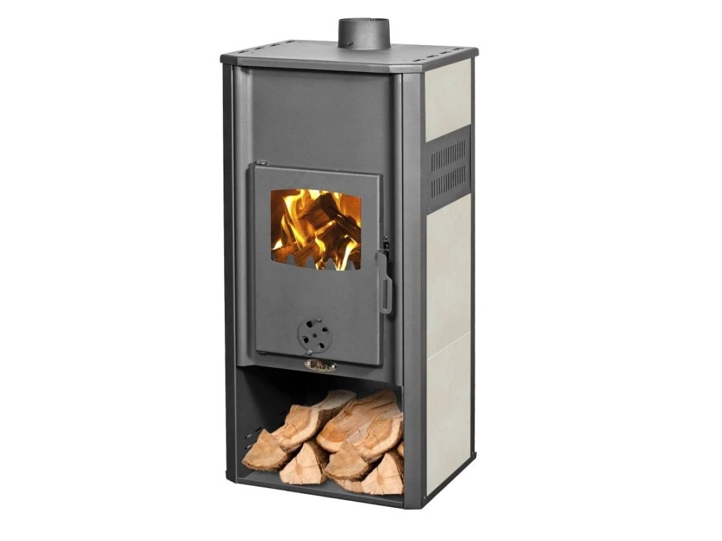 Tělo kamen je vyrobeno z kvalitního ocelového plechu s černým žáruvzdorným nátěrem. Boky doplňuje keramické obložení v béžovém odstínu, které zjemňuje vzhled a zároveň pomáhá akumulovat teplo. Kamna tak dobře zapadnou do moderní kuchyně, klasického obýváku i venkovské chalupy.