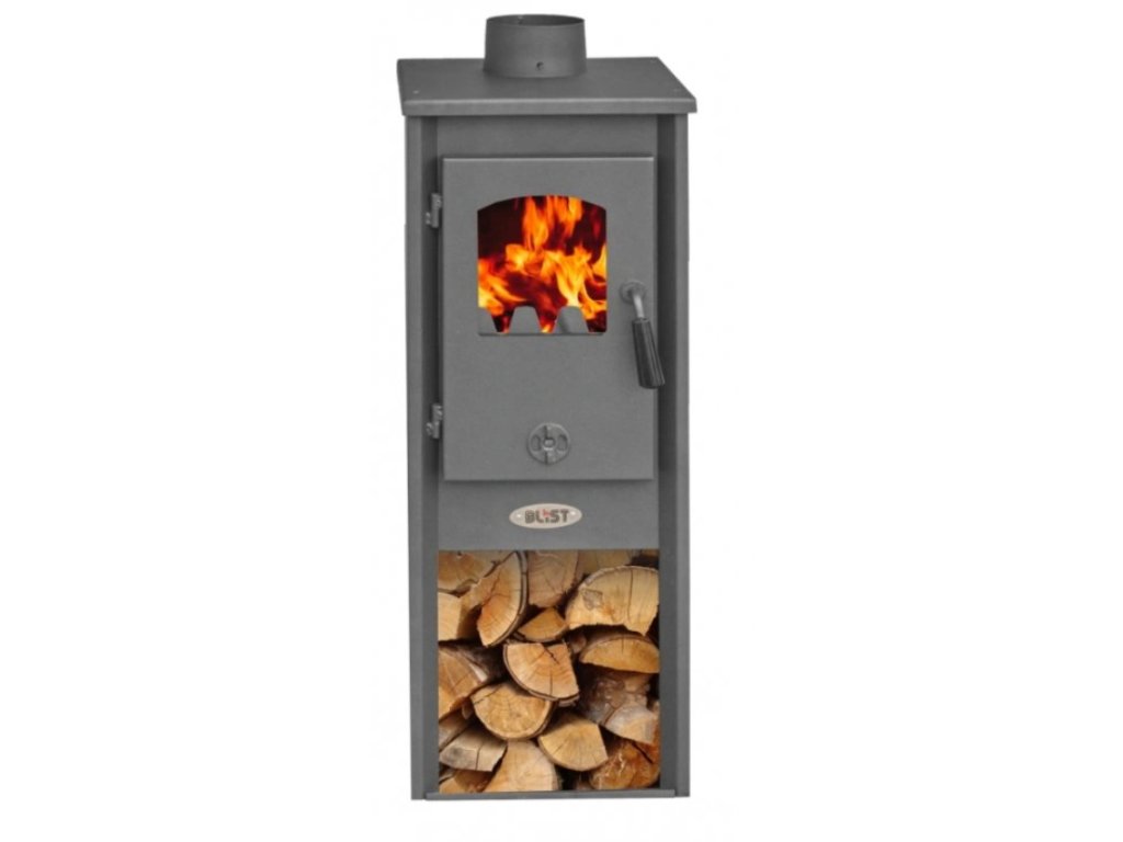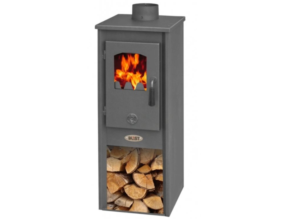 - Materiál: ocelový plášť, šamotová vyzdívka, litinový rošt