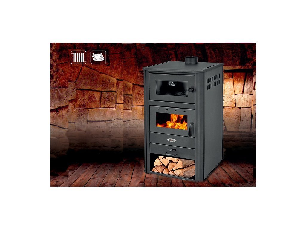Stylová krbová kamna BLIST BRM E - 24 kW s teplovodním výměníkem a troubou na pečení.Krbová kamna BLIST vhodná pro napojení topných těles nebo pro ohřev užitkové vody. Díky tomuto systému s výkonem až 18 kW je možné pohodlně vytápět i celou chatu, chalupu nebo dům. Navíc je tento model kamen doplněn troubou pro možnost pečení.