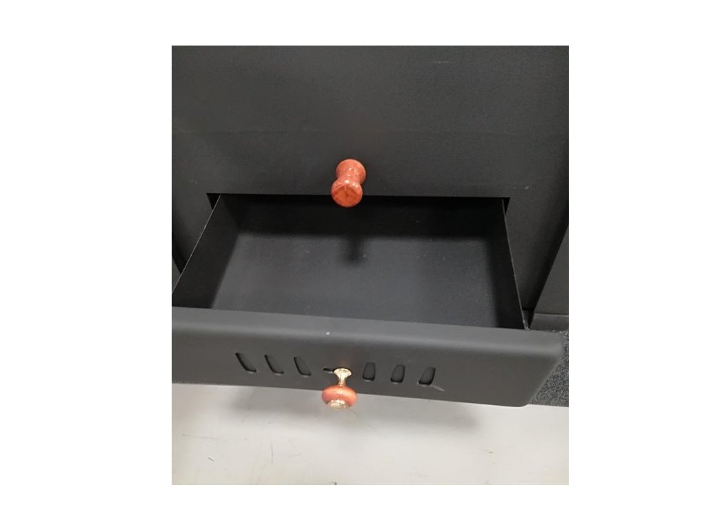 Praktické funkce – roštovací páka, kovové klapky pro regulaci primárního a sekundárního vzduchu.