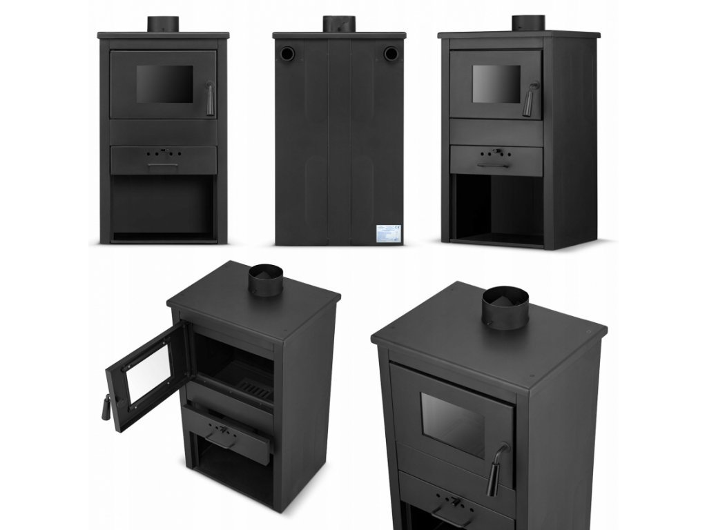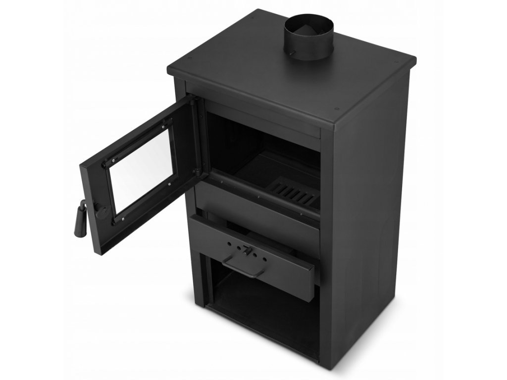 Tělo kamen z ocelového plechu je ošetřeno černou žáruvzdornou barvou.