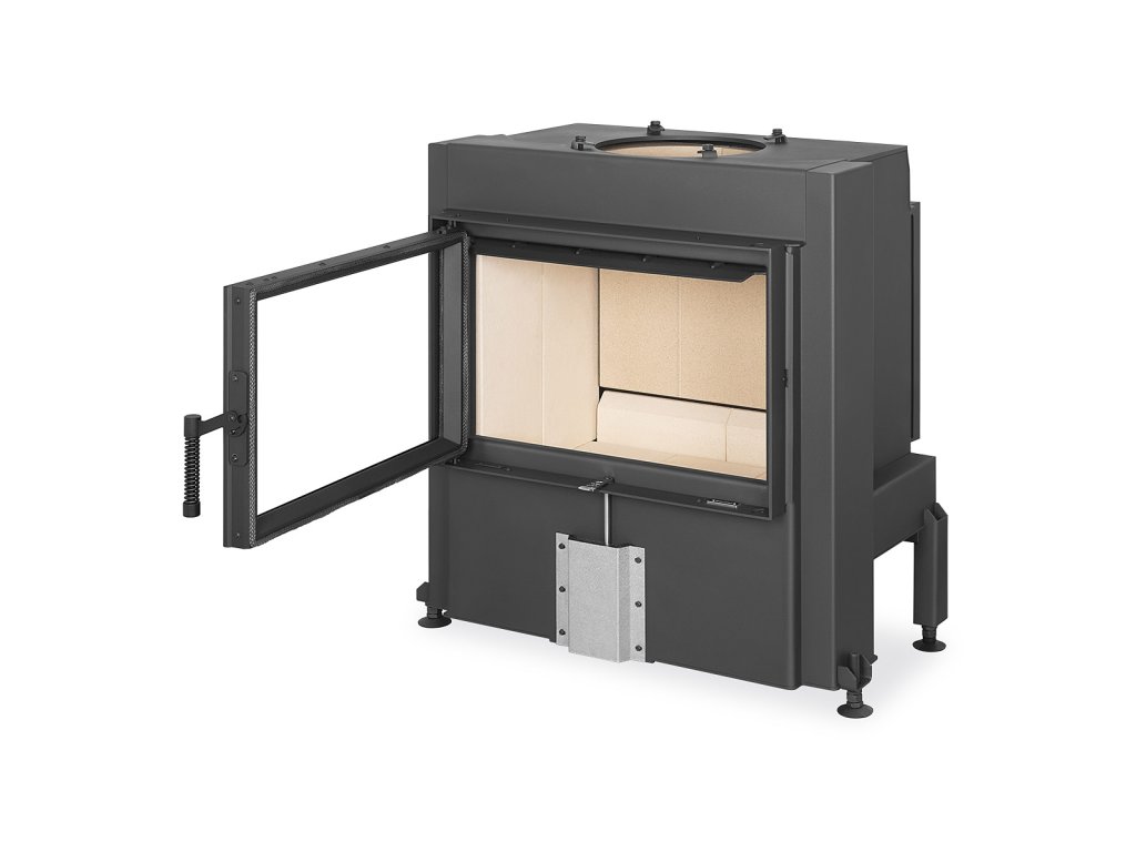 Dvojité designově potištěné sklo dvířek, promyšlené vedení vzduchu a centrální přívod externího vzduchu (CPV) o průměru 150 mm předurčují tuto vložku pro nízkoenergetické a pasivní domy, kde je cílem příjemné sálavé teplo bez přetápění a bez závislosti na vzduchu z místnosti.