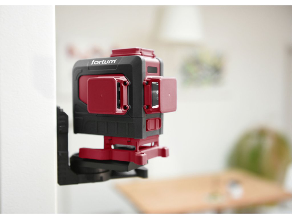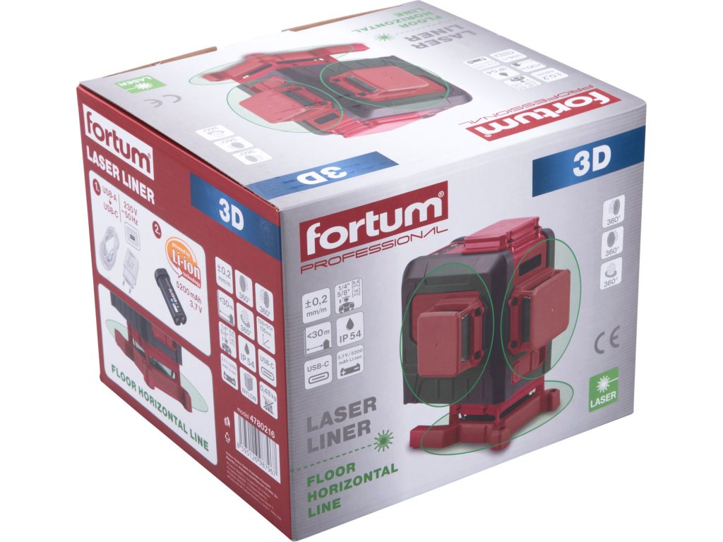 Fortum 4780216 3D Křížový Laser s Nabíjecím Akumulátorem a Zeleným Paprskem