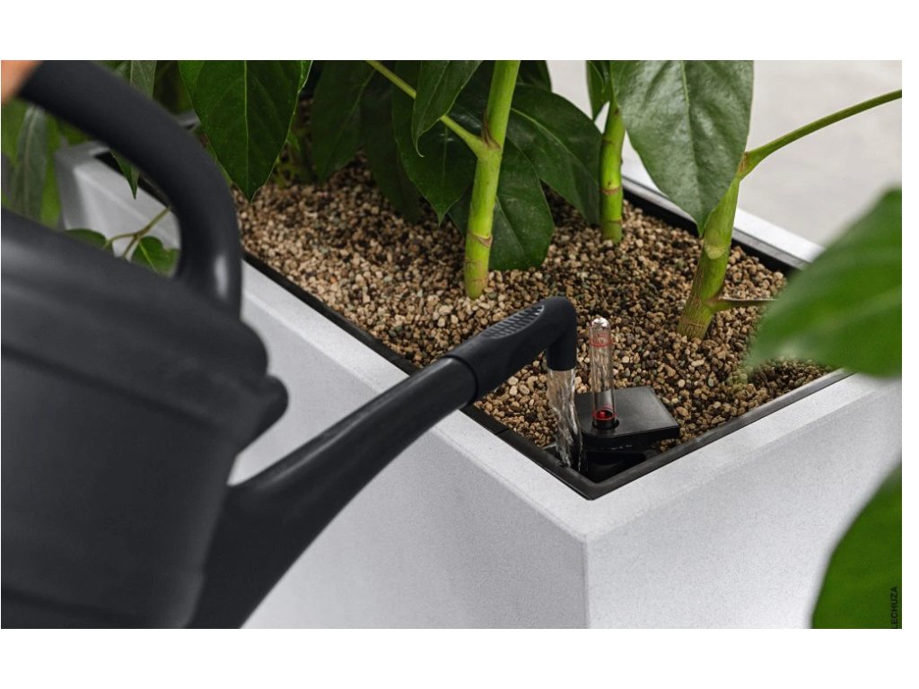 Součástí květináče je vyspělý samozavlažovací systém LECHUZA, který poskytuje rostlinám optimální množství vody po dobu až několika týdnů. Díky tomu není nutné časté zalévání, a rostliny si o vodu “řeknou samy”. Výsledkem je zdravější růst, bujnější zeleň a méně práce pro vás.