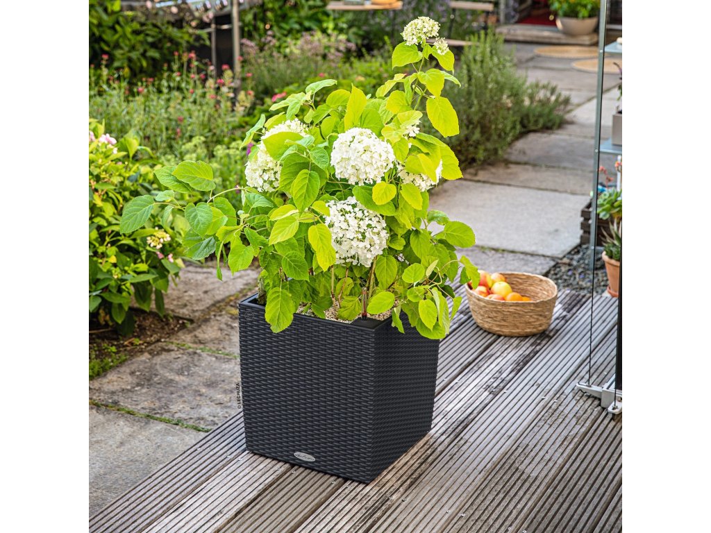 Lechuza Cube Cottage 50 cm je samozavlažovací květináč s rozměry 50 cm na šířku a výšku. Jeho matný antracitový povrch, vyrobený z probarveného plastu, napodobuje pletený ratan, což mu dodává elegantní vzhled. Tento květináč je ideální pro použití jak v interiéru, tak v exteriéru.