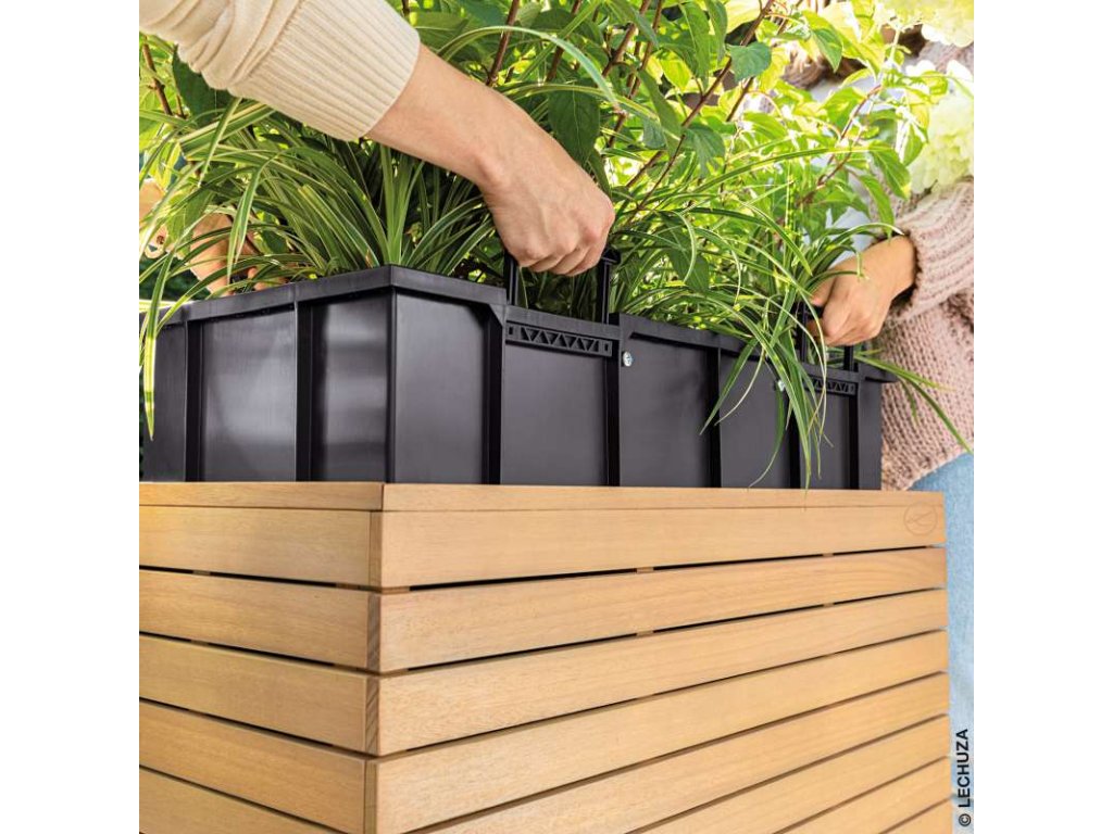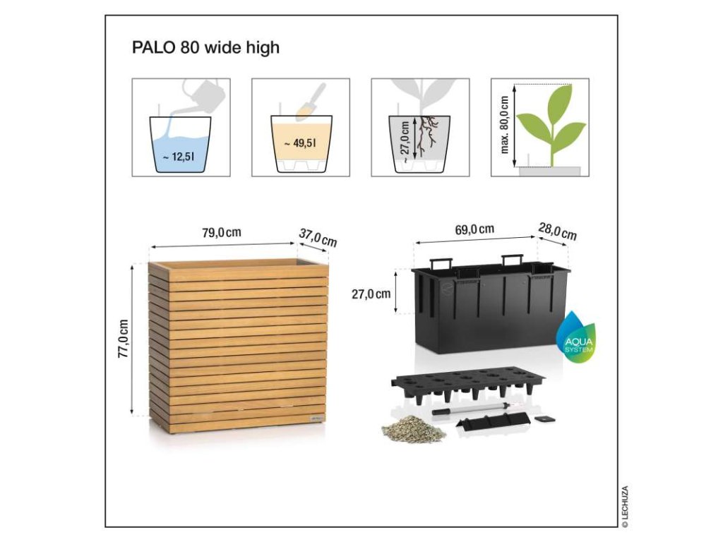 Lechuza PALO Natural Wide High 80 – Luxusní dřevěný truhlík se samozavlažovacím systémem