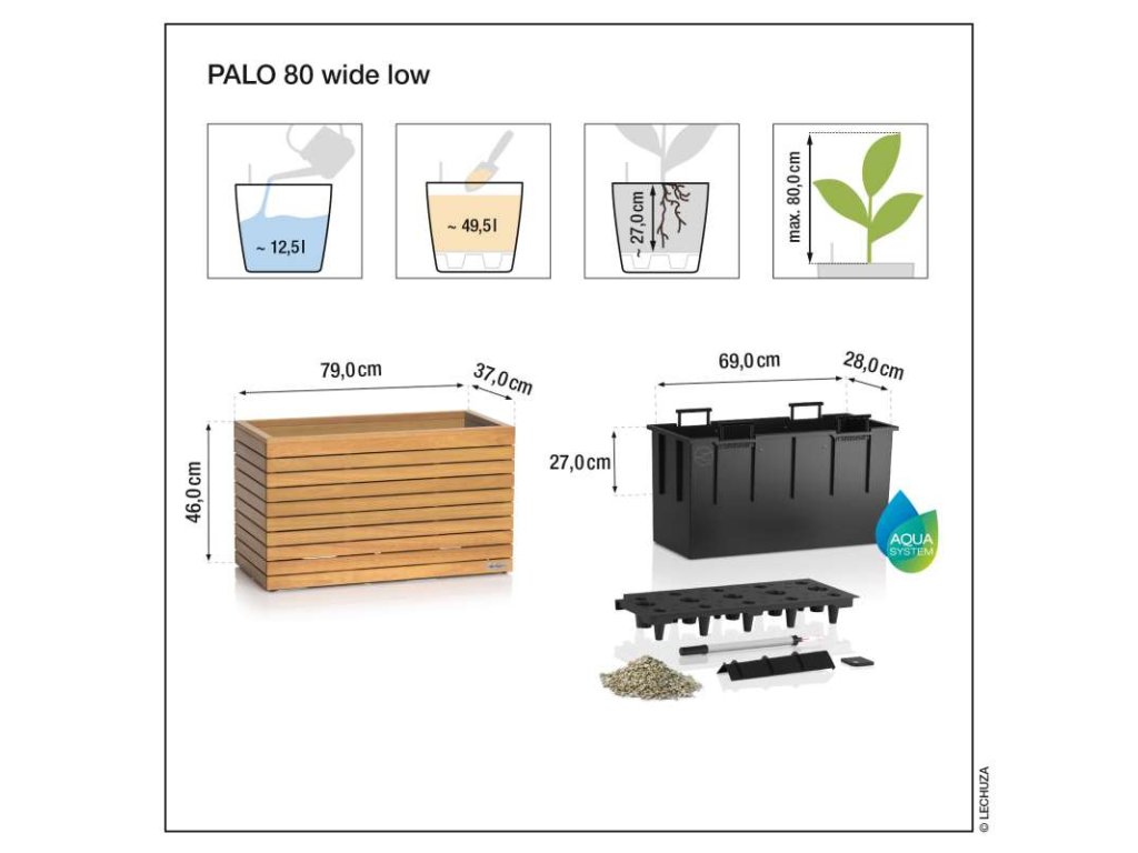 Lechuza vybavila tento model druhým dnem s nádrží na 13 litrů vody, měrkou hladiny vody a drenážním médiem Lechuza PON. Vaše rostliny tak dostanou ideální množství vláhy na 2 až 12 týdnů – bez rizika přemokření či podmáčení.