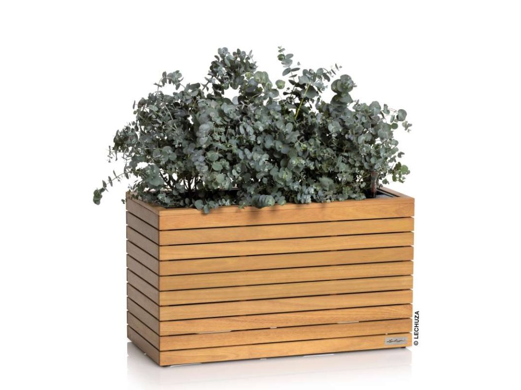 Květináč je vyroben z masivního eukalyptového dřeva s FSC certifikací. Díky olejové povrchové úpravě vyniká kresba dřeva, které zároveň získává ochranu proti povětrnostním vlivům. Matný povrch dodává luxusní vzhled i v dlouhodobém horizontu.