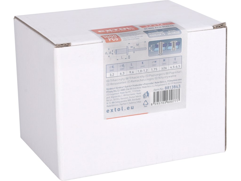 nýty trhací hliníkové sada 1000ks, O 3,2x9,6mm plochá hlava