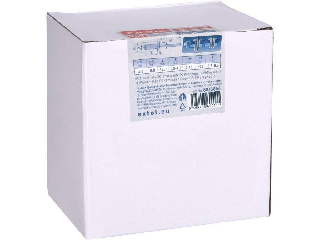 doplňující parametr: | pracovní rozsah/tl. nýtovaného materiálu 6,5-8,5mm |