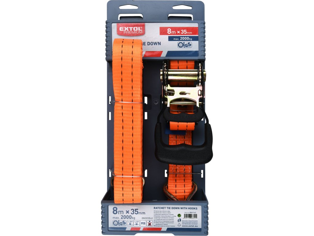 pás upínací ráčnový s háky, 8m x 35mm, max. 2000kg