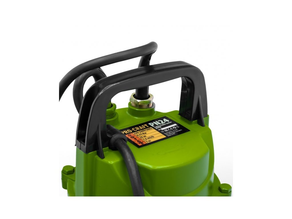 Procraft PN24 je možné ponořit až do hloubky 5 metrů a je ideální pro čerpání čisté a mírně znečištěné vody. Součástí balení je dlouhý přívodní kabel s vidlicí a povrchová úprava brání vzniku koroze.